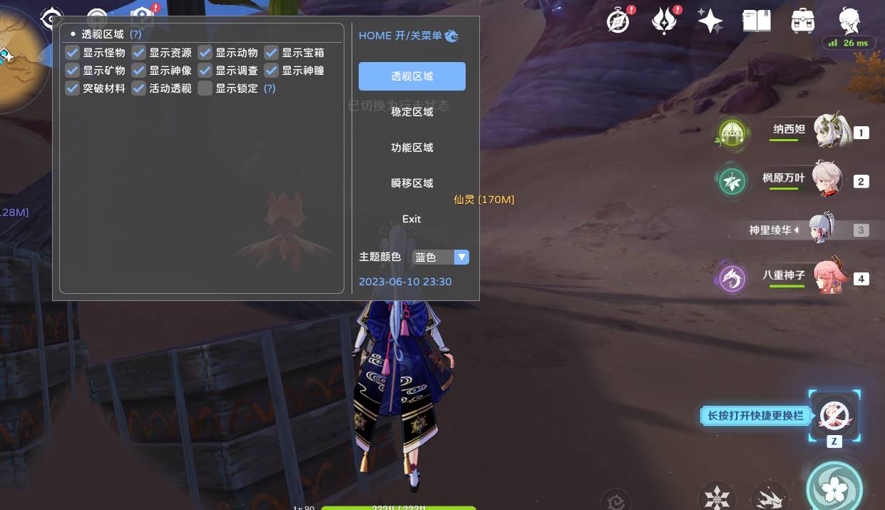 三维坐标瞬移:突破游戏内置传送限制,支持直接定位至未解锁的锚点区域,玩家可瞬间移动至稻妻城屋顶收集雷神瞳,或直达层岩巨渊地下矿区进行勘探。